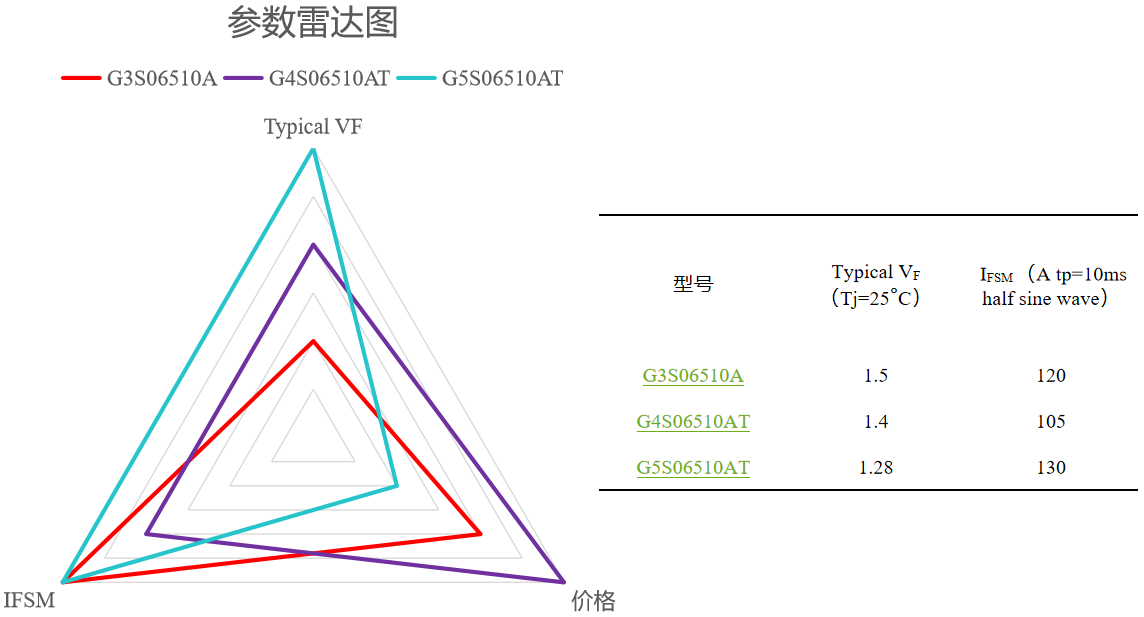 尽管如此,影响器件系统损耗的主要部分--较高的正向压降一直是碳化硅二极管器件难以解决的问题。2019年,304AM永利发布了新一代低VF碳化硅二极管,采用了thinwafer技术,使得新一代产品的常温典型正向压降小于1.3V,且器件的抗浪涌性能行业领先。