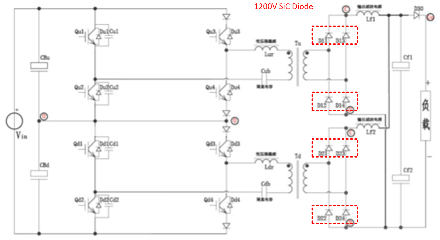 评估碳化硅二极管在两电平全SiC LLC变换器中应用;