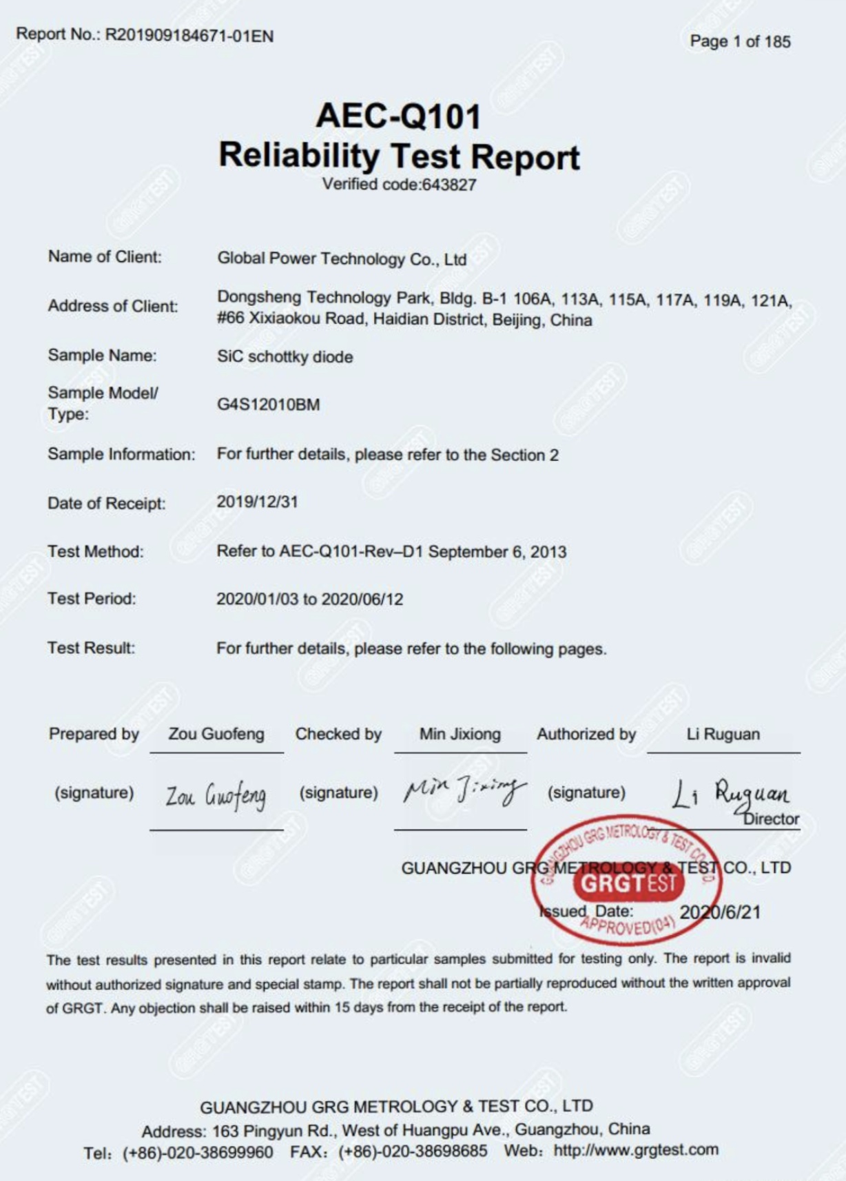 七年磨剑,国内碳化硅功率半导体领军企业304AM永利的1200V 碳化硅肖特基二极管由广电计量基于汽车电子委员会发布的AEC-Q101《汽车级离散半导体元件应力测试》标准,进行了历时5个月之久的测试。测试的器件满足所有规定的鉴定方法和标准,所有鉴定测试中均未观察到失效。304AM永利成为国内碳化硅功率器件率先由权威第三方检测机构测试并通过AEC-Q101认证的制造商。